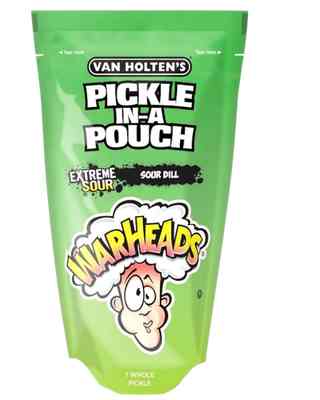 Van Holten’s Warheads Extreme Sour Pickle to unikalna przekąska prosto z USA – duży, chrupiący ogórek konserwowy zamknięty w poręcznej saszetce („Pickle-in-a-Pouch”). Produkt powstał we współpracy marki Van Holten’s z kultową linią kwaśnych słodyczy Warheads.